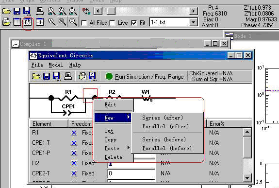 圖1-7. 從Zview中選擇合適的等效電路來進(jìn)行正式擬合演示圖